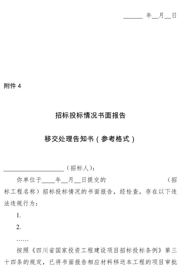 4.《招標投標情況書面報告移交處理告知書》(參考格式)